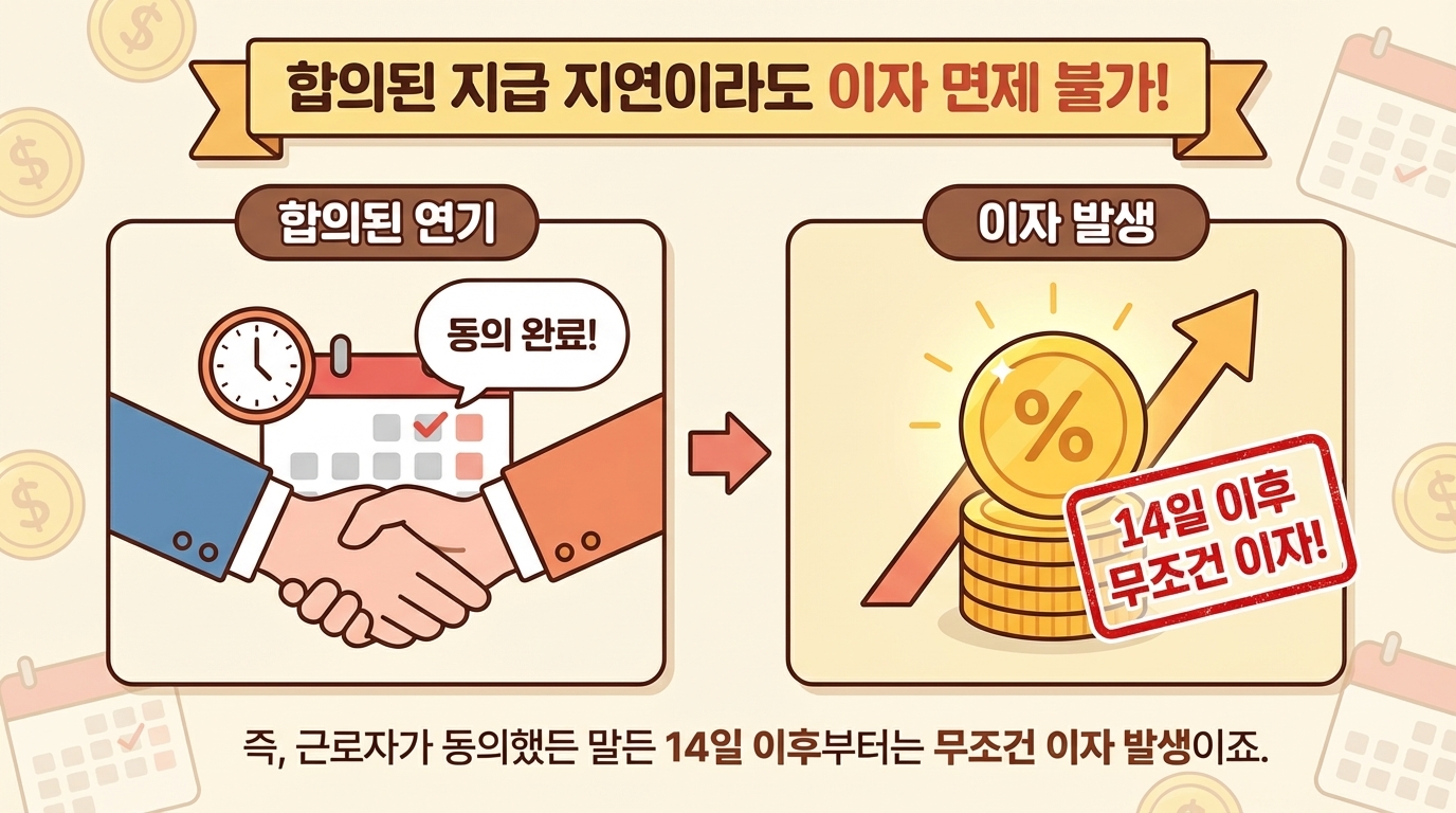 ⦁ 합의로 지급일을 미룬 경우 → 반드시 서면 합의 필요