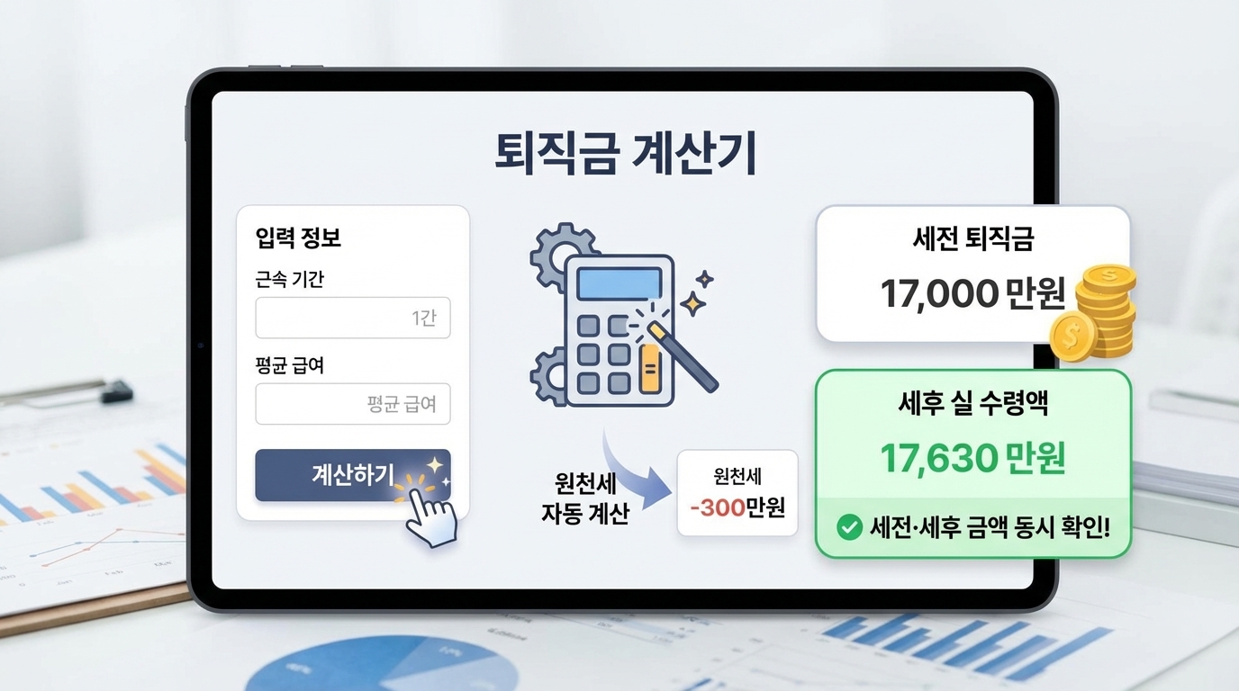 퇴직금 계산기에서 나오는 금액은 대부분 세전 금액입니다.
