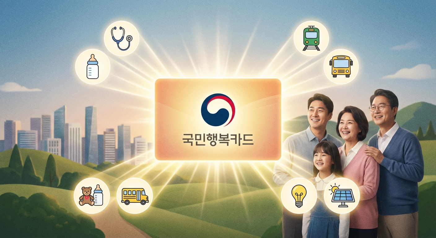 국민행복카드는 다양한 정부 바우처를 하나의 카드로 통합해 사용할 수 있도록 만든 전자카드예요.