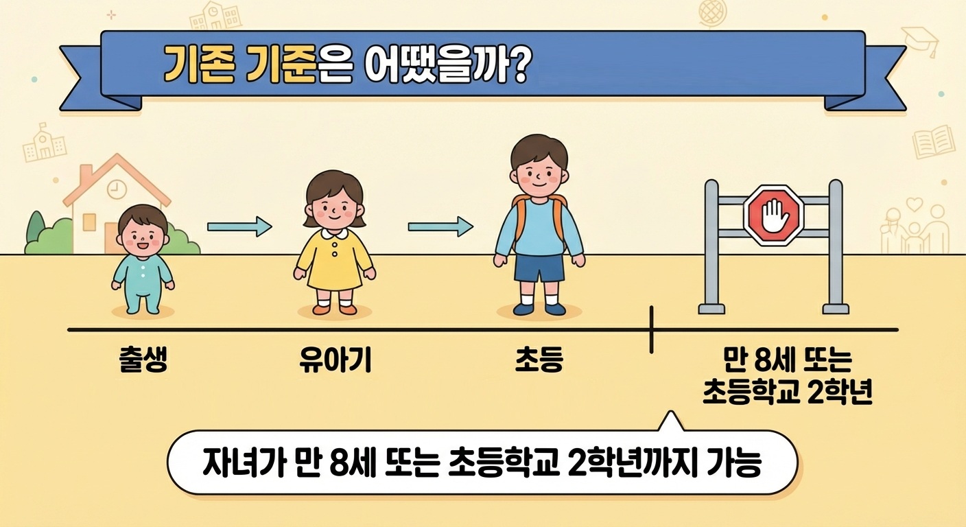 ⦁ 자녀는 만 8세 이하 또는 초등학교 2학년 이하여야 하며,